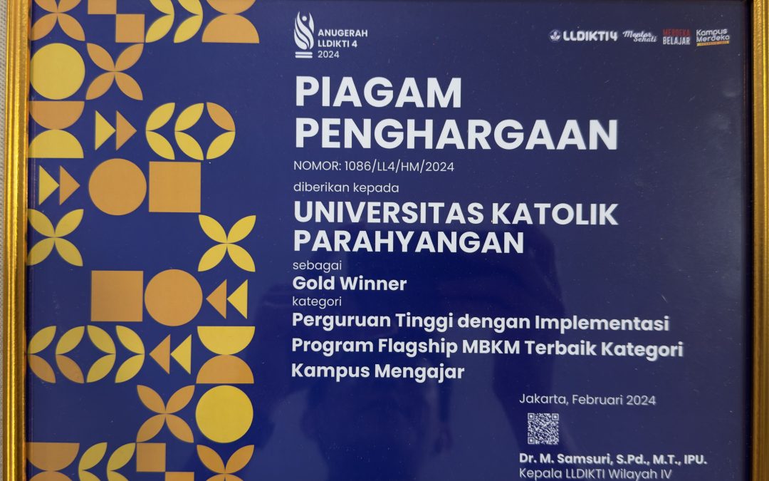 UNPAR- Akreditasi Institusi Unggul; yang berlokasi di Kota Kembang Bandung sebagai salah satu universitas swasta tertua di Indonesia di bawah Kementerian Pendidikan Tinggi, Sains dan Teknologi (DIKTISAINTEK) bersama-sama meningkatkan cakupan pembelajaran di luar program studi bagi mahasiswa ia melalui program-program kolaboratif DIKTISAINTEK BERDAMPAK, yang sudah kita kenal sebagai Merdeka Belajar Kampus Merdeka (MBKM) yang terus berlanjut; dan tentu saja diharapkan dapat berkontribusi dan memberikan dampak yang baik untuk sivitas akademika UNPAR, keutuhan manusia di lingkungan Tatar Parahyangan, bangsa dan negara yang Berketuhanan berdasarkan sesanti Bakuning Hyang Mrih Guna Santyaya Bhakti.