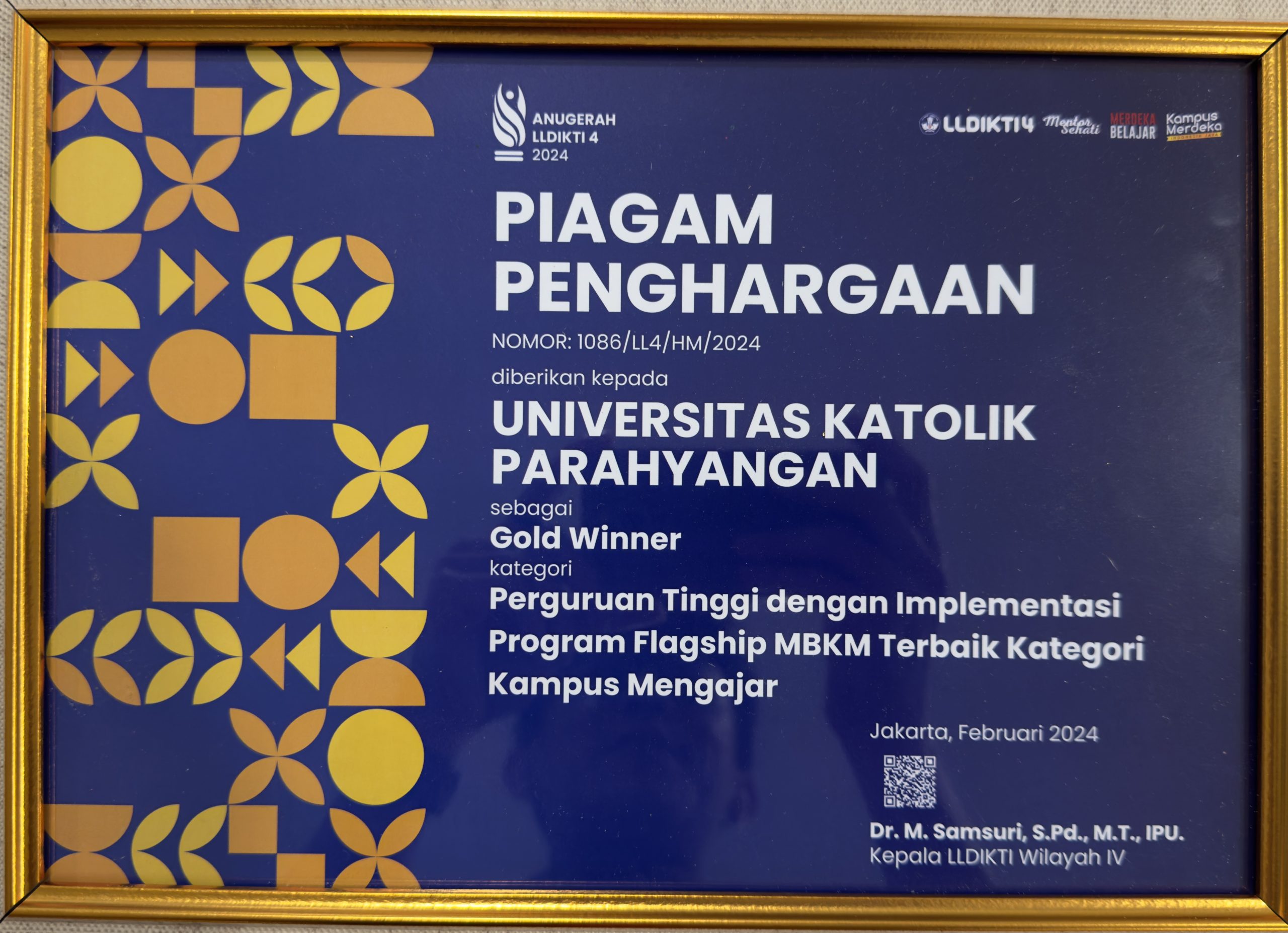 Dalam perhelatan acara Malam Anugerah LLDIKTI IV dengan berbagai macam kategori Perguruan Tinggi Wilayah Jawa Barat dan Banten yang diadakan tanggal 19-20 Februari 2024 yang lalu, UNPAR mendapatkan 3 penghargaan, salah satunya adalah GOLD WINNER untuk Perguruan Tinggi dengan Implementasi Program Flagship MBKM Terbaik Kategori Kampus Mengajar.